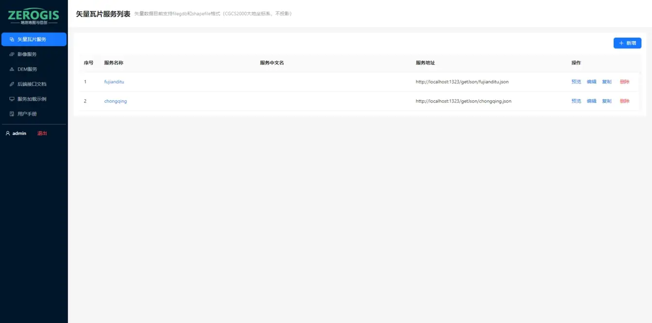 支持矢量数据、geotiff(DEM、遥感影像)数据发布